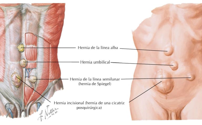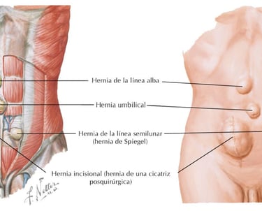 Hernia incisional o ventral Aparece en el sitio de una cirugía abdominal previa. La cicatriz se debilita y permite que el tejido interno se asoma. Es más común después de cirugías abiertas.